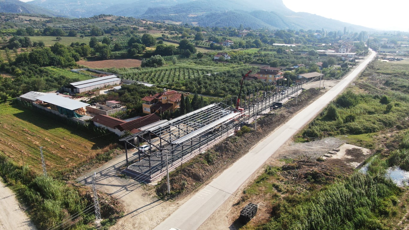 Bölgede üreticiyle, tüketiciyi bir araya getirerek vatandaşlara uygun fiyata kaliteli ürün alımı imkanı sunacak olan projede sundurma bölümü hızlı bir şekilde tamamlanıyor. 25 dönümlük arazi üzerine inşa edilen projede temel imalatı ile kazı-dolgu işlemleri bitirildi, 2 farklı sundurmanın yapımı için yalıtım ve çelik imalatına geçildi. Proje bittiğinde, üretici bahçesinden aldığı ürünü bu çatı altında vatandaşlara sunabilecek. Ayrıca oluşturulacak gıda güvenlik zinciriyle halka güvenilir ürünler sunulacak.